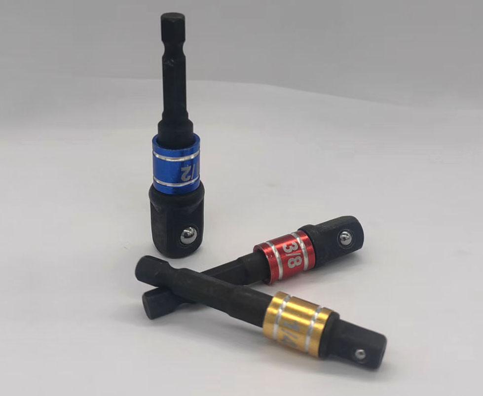 Zawiera adaptery z trzpieniami sześciokątnymi 1/4 cala, 3/8 cala i 1/2 cala, kompatybilne z większością wkrętarek udarowych i wiertarek elektrycznych.