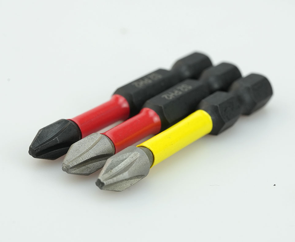 Wysokiej jakości stal S2 i zoptymalizowany proces obróbki cieplnej zapewniają doskonałą twardość i wytrzymałość. Ich wydajność znacznie przewyższa wydajność zwykłych bitów.