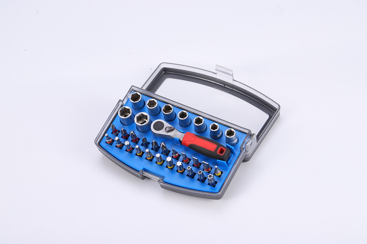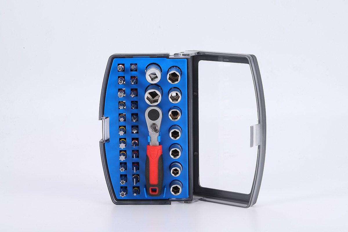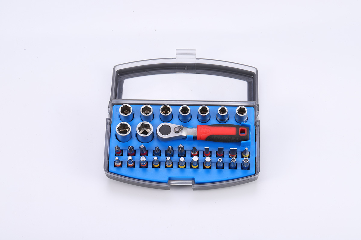 LOKALIZACJA > Dom > CENTRUM PRODUKTÓW > Zestaw bitów do śrubokrętów > Zestaw 32 nasadek i bitów zapadkowych Wysokiej jakości stal S2 zapewnia wysoką zdolność przenoszenia sił, trwałość i elastyczność.